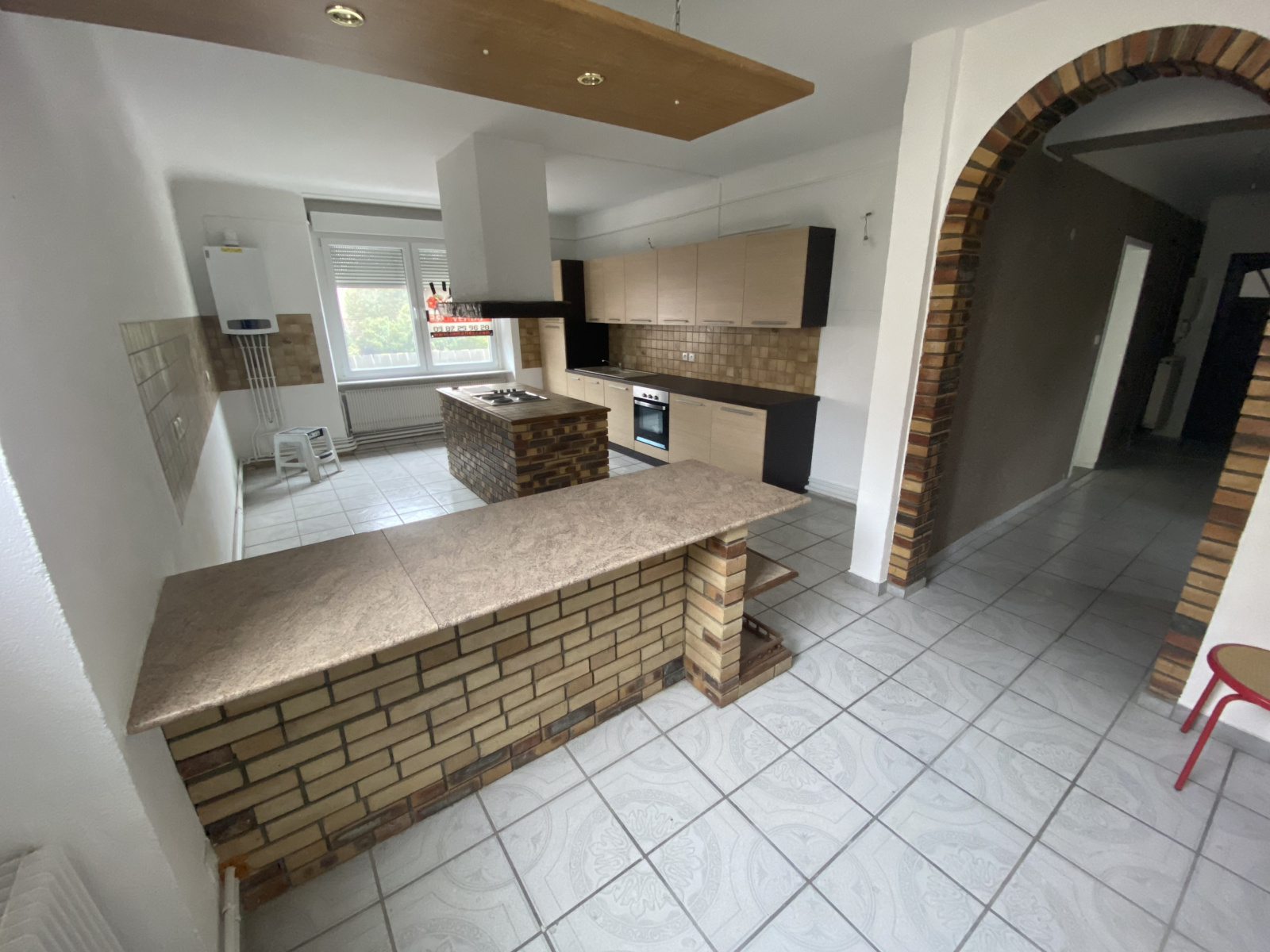 A proximité de toutes les commodités, appartement de type F4 110m² offrant un salon, une grande cuisine équipée neuve avec îlot central, 2 chambres, 1 grande salle de bain équipée (baignoire d'angle-douche), un cellier. Chauffage gaz de ville. 2 places parking arrière. Une cave. Copropriété de 2 lots. A noter : "Immeuble soumis au statut de la copropriété de 2 logements. Les charges s'élèvent à date à 200€/an.