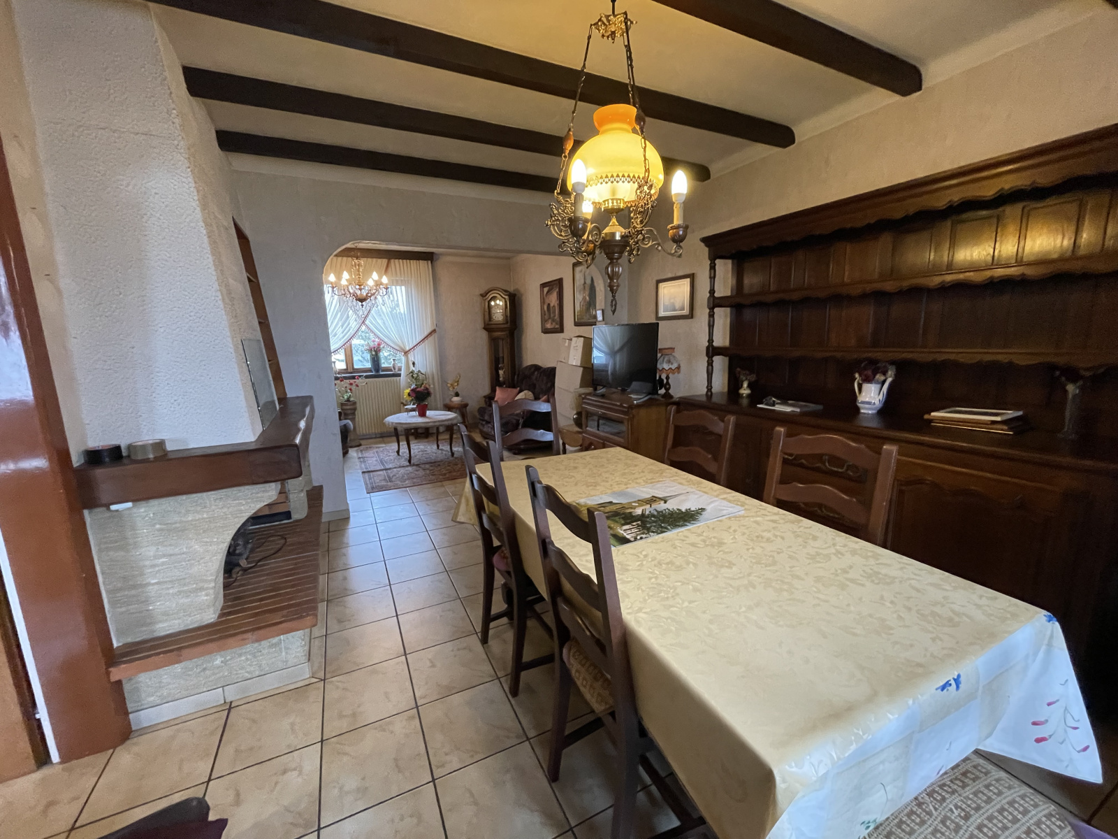 Elle se compose d'une grande entrée, d'une cuisine donnant un accès sur l'extérieur, d'un spacieux salon-salle à manger avec cheminée donnant également accès au jardin. L'espace nuit comporte une salle de bain, un wc séparé, 3 belles chambres ainsi qu'un espace de rangement important. La maison dispose également d'un sous-sol complet avec de nombreux espaces de stockage (possibilité 4ème chambre), une buanderie, un grand garage avec fosse. Le terrain est entièrement clos et spacieux, il offre plusieurs possibilités d'aménagements (piscine etc). A noter : Toiture en très bon état, chaudière au gaz (De Dietrich). Des travaux sont à prévoir, les devis seront consultables lors des visites. (fenêtres, electricité).